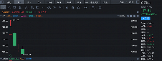 先上市的是西山科技,6月6日,西山科技上市交易,首日高开高走,盘中涨幅一度超过48%,首日最高上摸201元,这也使得西山科技的打新收益突破了3万元。