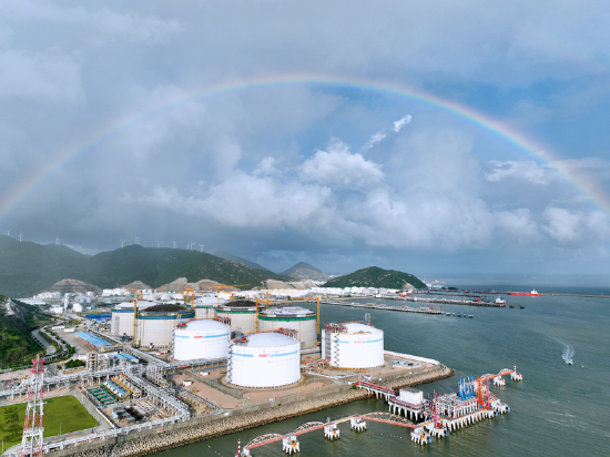 中国海油金湾“绿能港”位于广东省珠海市金湾区高栏港,一期项目于2013年投产,液化天然气年处理能力为350万吨,二期项目是国家石油天然气基础设施重点工程,于2021年6月开工建设,同时建设5座世界单罐容量最大的27万立方米液化天然气储罐及配套设施。