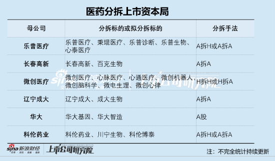 近期,医药行业分拆上市频现。先是药明康德(维权)拟分拆药明合联并于港股上市,而后又有乐普医疗拟将秉琨医疗分拆并在创业板上市。根据据不完全统计,乐普医疗、微创医疗、科伦药业等也纷纷在这几年密集分拆子公司上市,具体如下图: